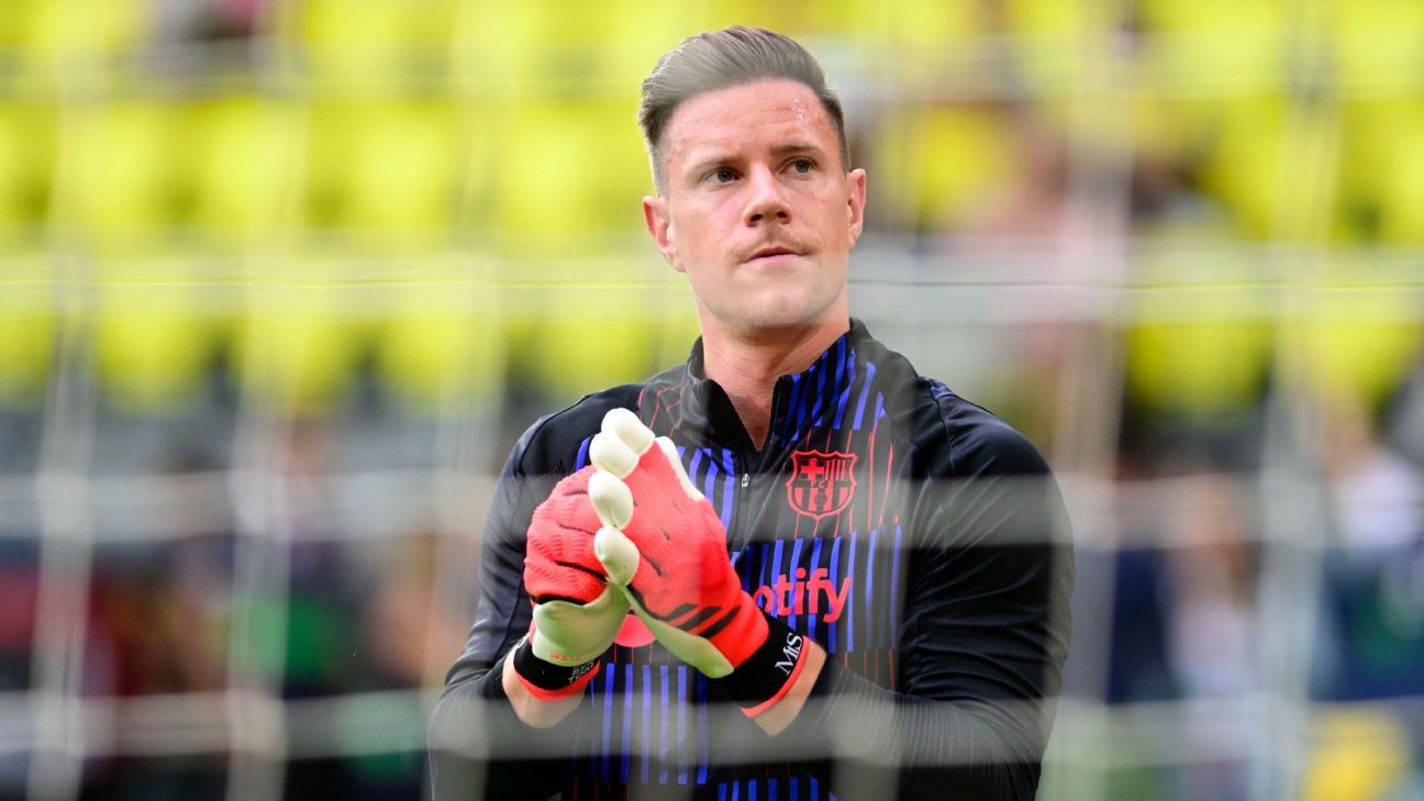 The Germany worldwide had made three improbable saves to maintain rampant Villarreal at bay earlier than collapsing in agony when clutching a cross simply earlier than half-time. Barça introduced that the 32-year-old suffered a “full rupture” of the patellar tendon in his proper knee, and sources have informed ESPN that he might be sidelined for months and is unlikely to play once more this season.